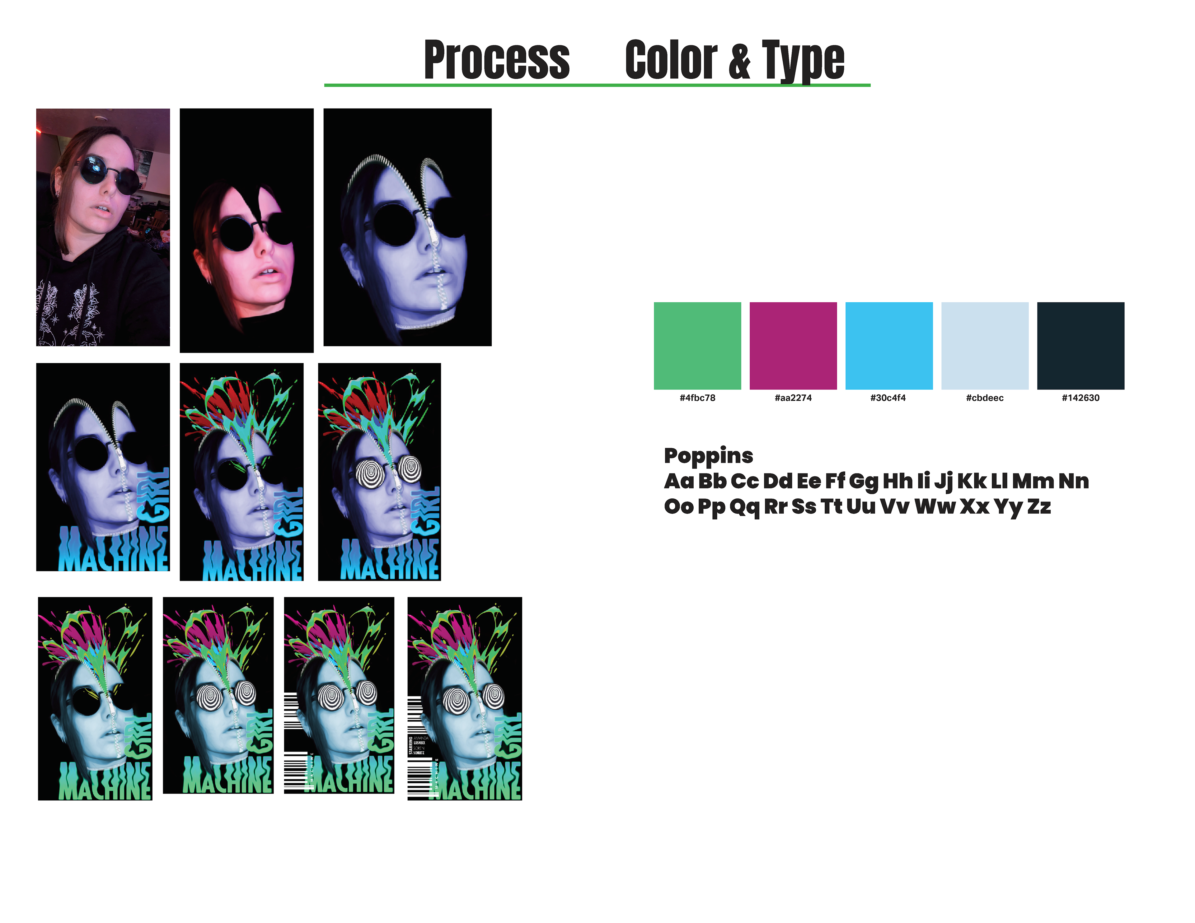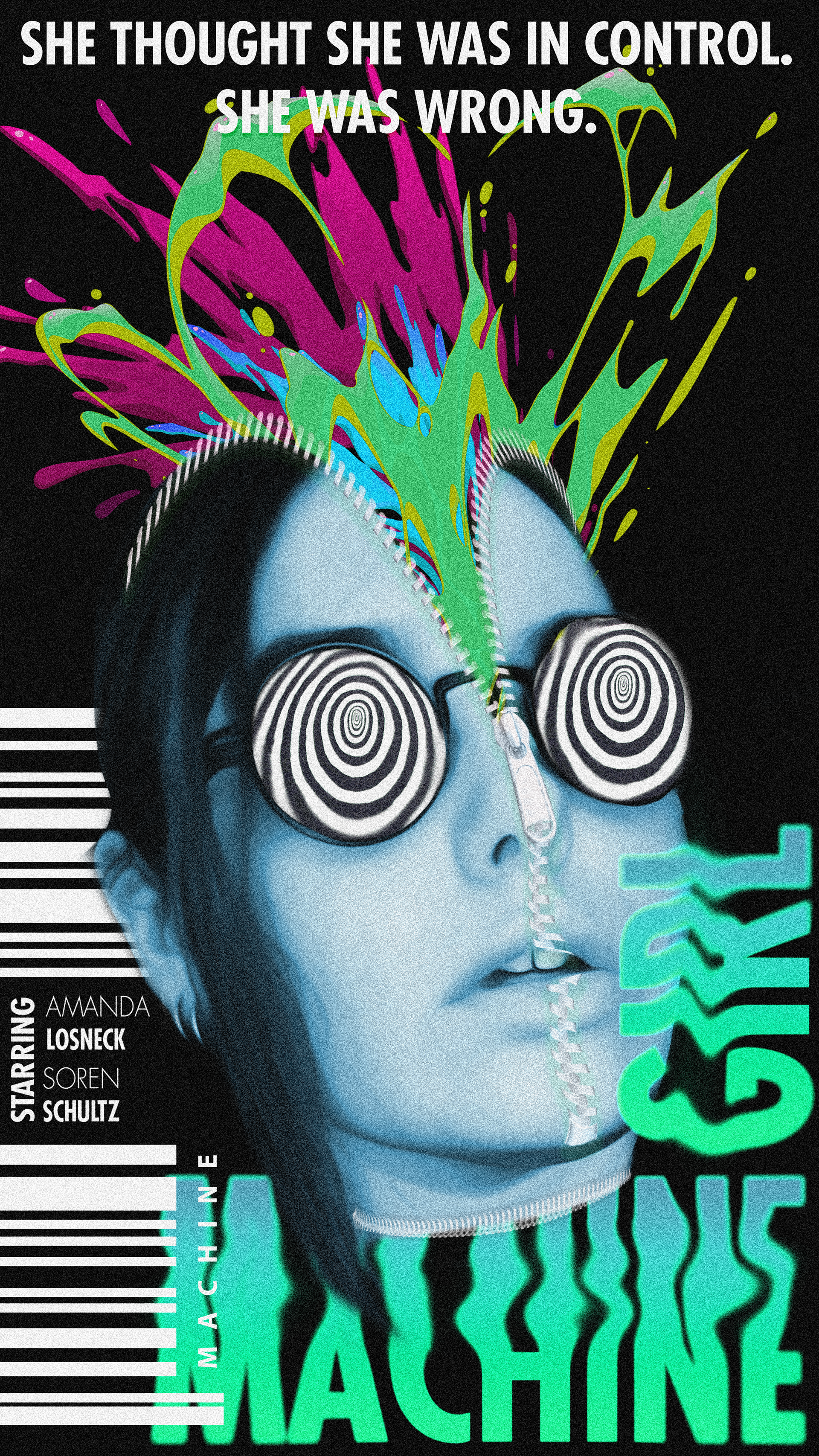 This was my final project for a Visual Tech class at Cleveland State University, here I made a movie poster featuring an image of my head unzipping and bursting with color. Below, I’ve documented my process and inspirations.